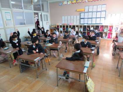 1年生児童も、クイズに積極的にチャレンジしていました。
