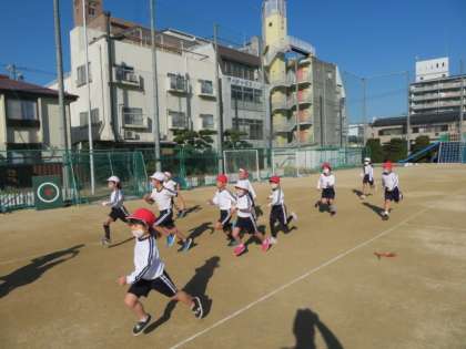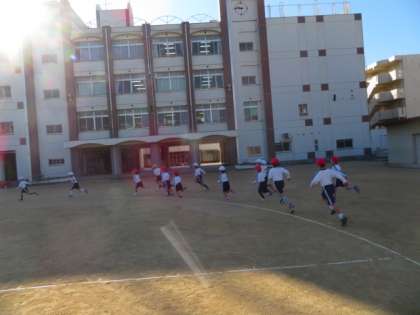 準備運動を終えた子どもたちは、トラック3周ラン(333m)にチャレンジしていました。