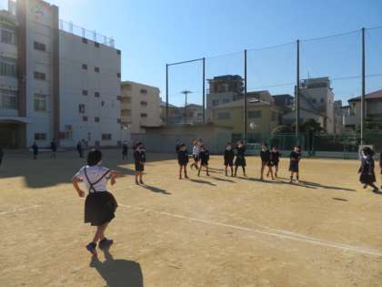 快晴で、昨日よりも気温が上昇して、多くの子どもたちが運動場へ出てきてそれぞれに遊んでいました。