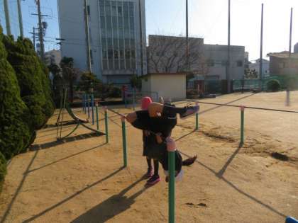 鉄棒まで、走ってきた子どもがいました。今日は天気が回復し、気温もかなり上昇する予報が出ているので、これから後、多くの子どもたちが運動場へ出て遊んでくれることでしょう。