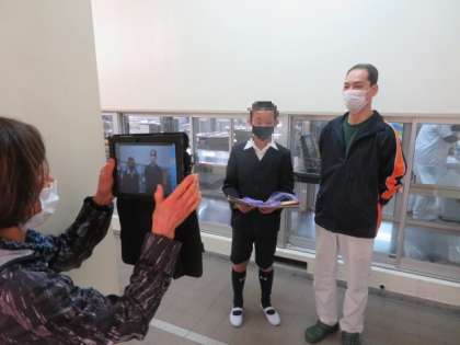 給食調理員からのメッセージも栄養教諭が録画していました。