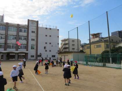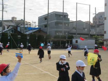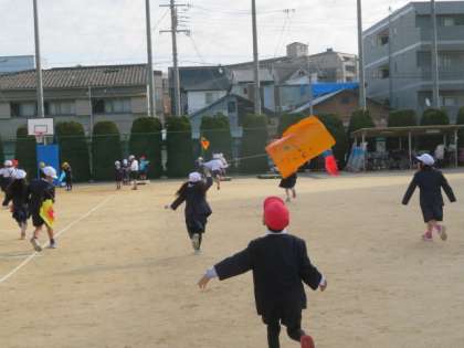 思うように揚がらなくても、楽しそうに協力してビニル凧を揚げようと一生懸命でした。