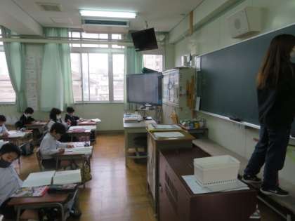 大型モニターに映し出された教科書の文章の言葉のアクセントやイントネーションに気をつけながらしっかりと声を出していました。