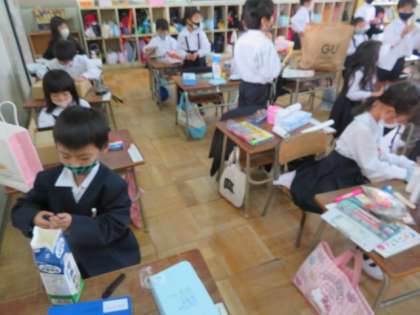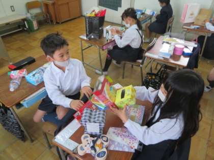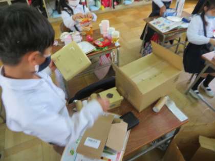 自分で用意してきた箱を組み合わせたり、装飾をしたりして自分が作りたいもののイメージをもとに作成していました。