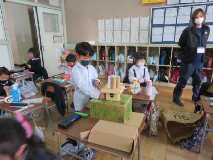 各自が家から持ってきた箱を組み合わせたり、装飾したりして、作成しながら自分のイメージをさらにふくらませているようでした。