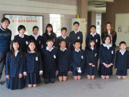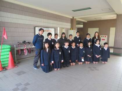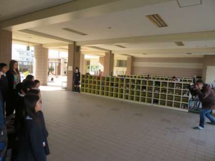 卒業アルバム用の後期代表委員会児童の写真撮影をピロティの児童会掲示板前で行っていました。
