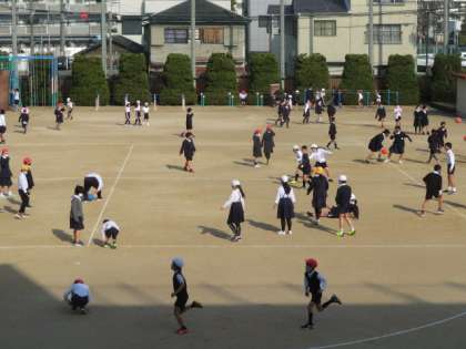 今週は運動週間ということもあり、大勢の子どもたちが休み時間になると運動場へ出て来て運動遊びをしています。