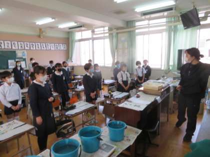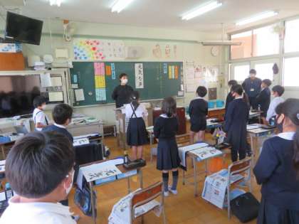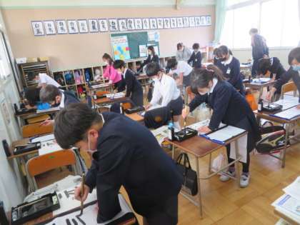 教室では密にならないように、また長い半紙に書きやすいように場を工夫して行っています。