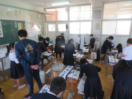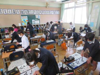 文字の大きさやバランスがとりにくいようですが、一画一画の間に気をつけながら集中して書いていました。