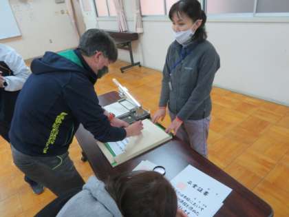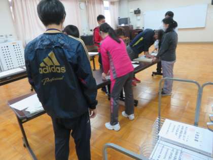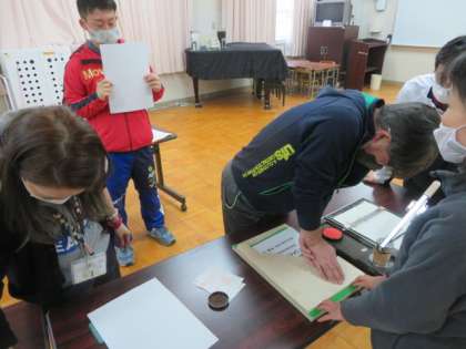 チームワークよく、役割を分担してとてもきれいに押印しました。