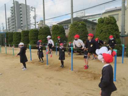 鉄棒でも、逆上がりなどいろいろな技にチャレンジしていました。