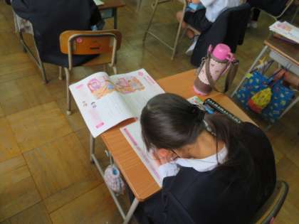 「なまけ にんじゃ」を教材に、道徳の学習をしていました。