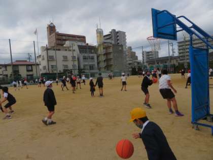 バスケットゴールの近くでは、特に子どもたちが集まっています。
