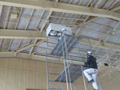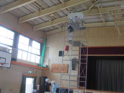 卒業式などの式典や各活動が少しでも明るい電灯の下でできるように交換工事をしているところです。