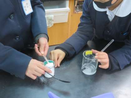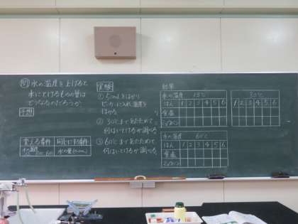 水の温度を上げると水に溶けるものの量はどうなるかということを予想を立て、実験を通して確かめていました。
