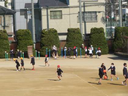 同じ時間帯で昨日と比べてみると、やはり気温が上昇してきているせいか、今日の方が運動場へ出て遊んでいる子どもの数が多かったです。