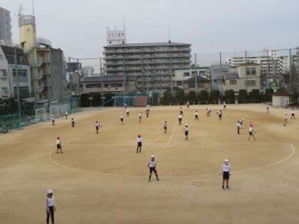 運動場いっぱいに広がって、ウォーミングアップをしていました。