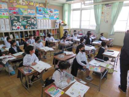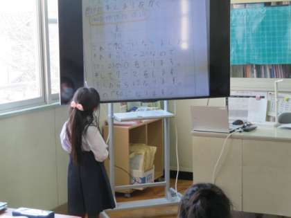 それぞれ考え方を書いたノートを大型モニターに映しながら自分が考えたことをみんなにわかるように説明していました。