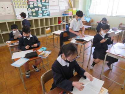 4年生は算数の学習時に学年を3分割し、学習室でも同じ単元の学習をしていました。