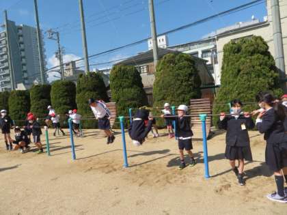 鉄棒では、いろいろな技にチャレンジしたりしていました。