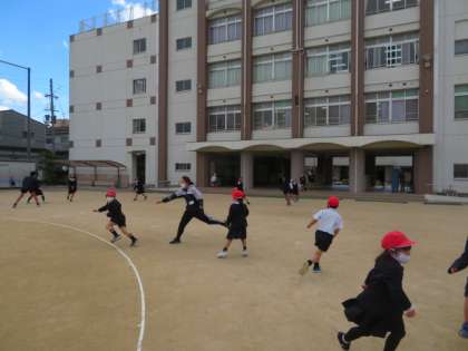 休み時間終了のチャイムが鳴るやいなや靴を履き替えにピロティに戻ってきます。