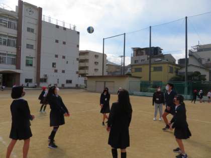 高学年の間で、バレーボールをして遊ぶことがブームになっています。