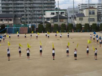 フラッグを振る音が、運動場に力強く響きました。