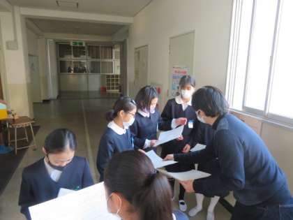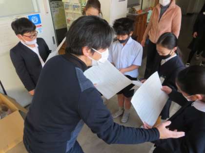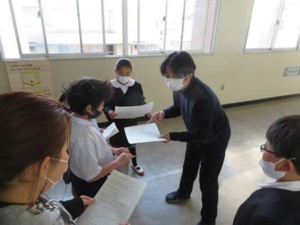 3月2日に予定している「卒業をお祝いする会」の実施に向けて児童会活動担当から、4・5年生の児童会・代表委員会児童に実施の要領を配り、確認をしていました。