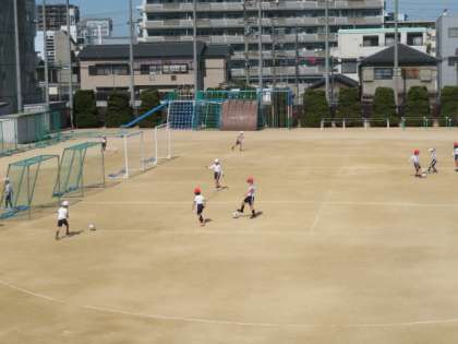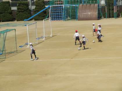 ゴール近くまでドリブルやパスをしながらボールを運んでシュートする子どもや、遠くから思い切ってシュートをする子どもなどいろいろでした。
