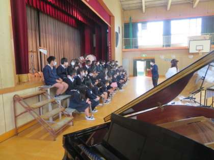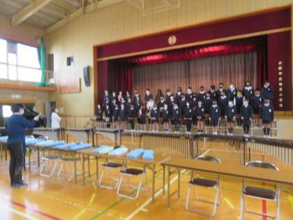 講堂で、卒業お祝い集会・学習参観・卒業式に向けての様々な確認や練習をしていました。