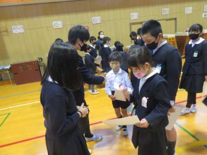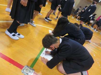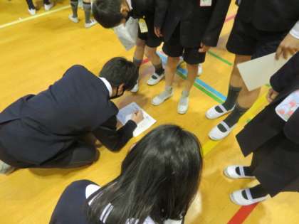 6年生からサインをもらおうと、5年生までの児童は勝つ気満々ですが負けてしまうと列の後ろに戻ります。