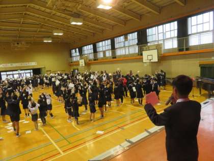 このクイズは各縦割り班ごとに答えるので、班のみんなの意見を統一したりするところで大いに盛り上がりました。