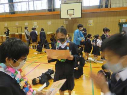 受け取った6年生は、それぞれにとてもうれしそうでした。