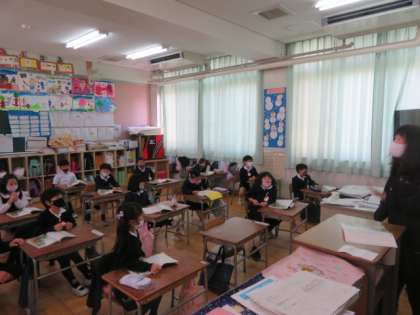 「スイミー」の音読をするということで、句読点を意識した音読にチャレンジしようとしていました。