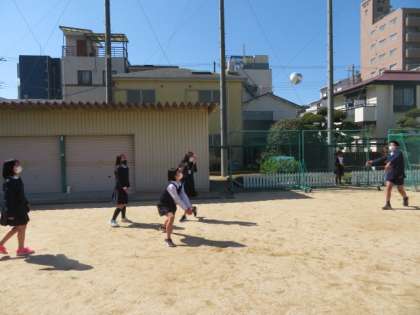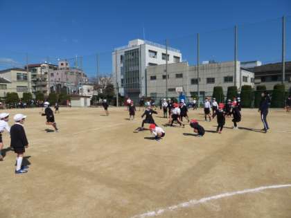 気温がぐっと下がりましたが、大勢の子どもたちが運動場へ出てきて遊んでいました。