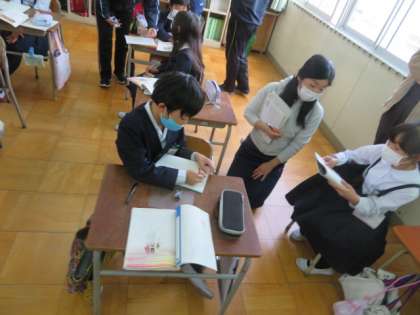 考えや意見を十分に交流した後、全体に向けて発表していました。