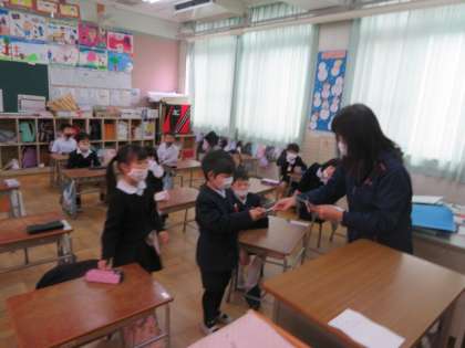 各学級ごとに担任から、それぞれの形で手渡されます。
