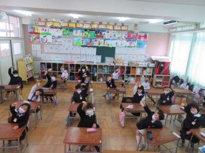 3/5 金 2時間目 1年1組 「本の森」からプレゼント 3