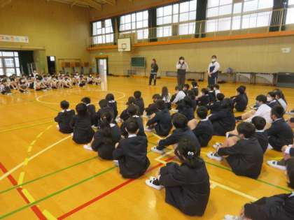 フロアに集まって、5年生児童、5年担任から感想や卒業をお祝いする言葉がありました。