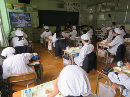 3/5 金 給食時間 1年生から6年生へのお祝いメッセージ 2
