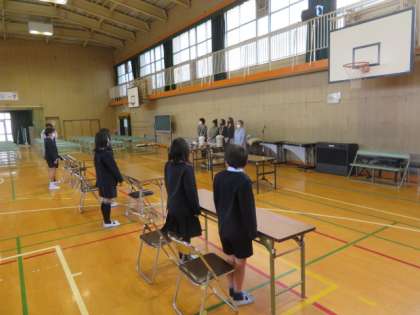 3・4時間目に6年生が1・2組が分かれて、講堂で茶道教室、多目的室で関電出前授業がありました。