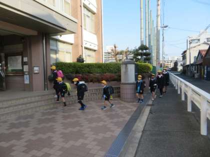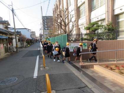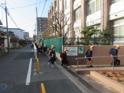 新班長を先頭に、少し早めに集団登校をしてきました。