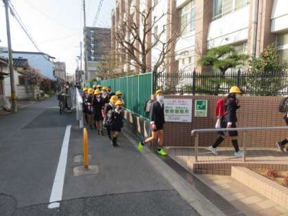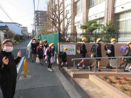 これまでの班長だった6年生が、班の後ろについていつもとあまり様子が変わることなく無事に集団登校をしてきました。
