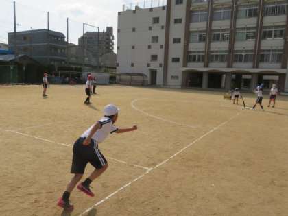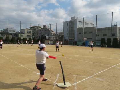 ベースボール型のボール運動はふだんからあまりしていないので難しそうでしたが、ルールを工夫したりしてみんなが楽しくゲームをしていました。