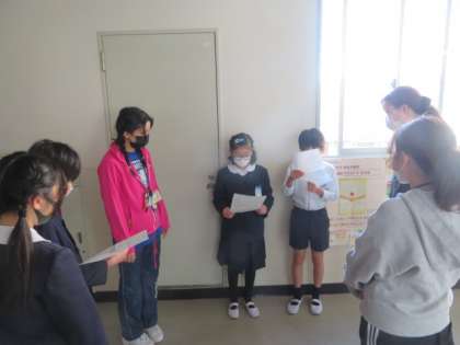 いつものように今日の担当児童が事前に集まってきて、確認や練習をしました。