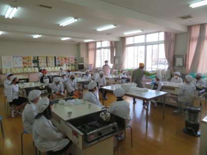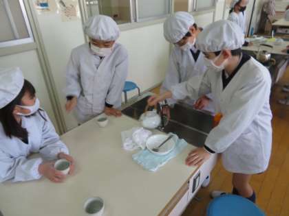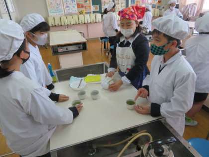 「お湯をわかしてみよう」ということで、ガスコンロでお湯をわかして「お茶を飲もう」という活動を班ごとに行っていました。