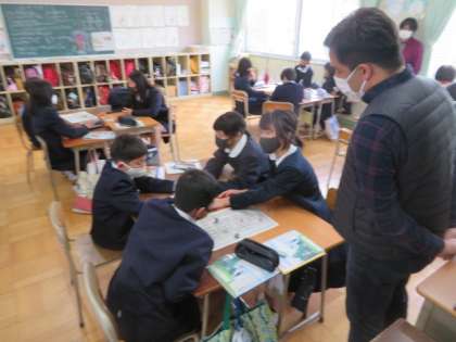 C-NETの先生も入って、英語のパフォーマンスすごろくを楽しんでいました。
