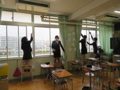 ふだんの掃除の時間には掃除しにくいところを頑張っていました。