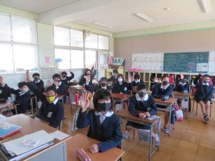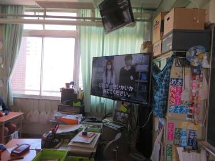 今朝の児童集会は、各教室で集会委員会が作成した動画による四人の先生それぞれが好きな本を三択で当てるクイズでした。