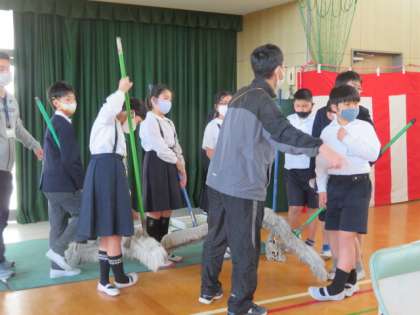5年生たちは、会場設営や清掃活動に頑張っていました。